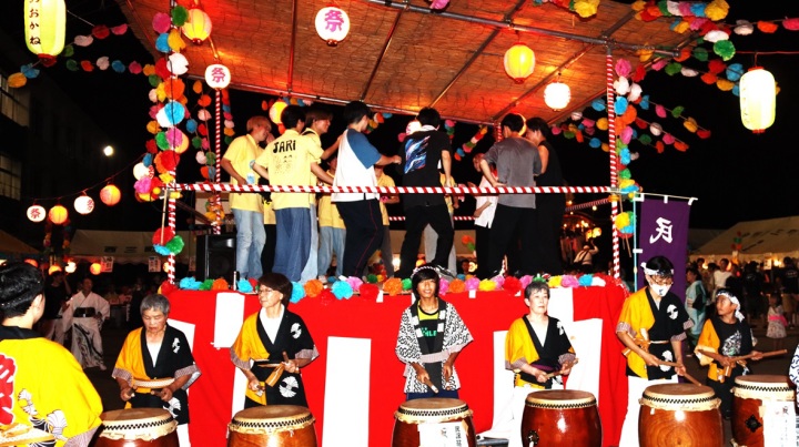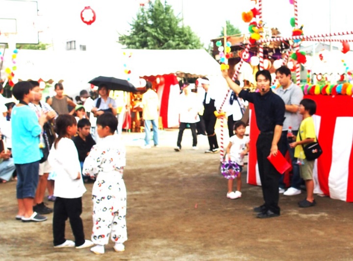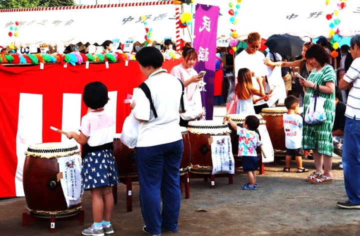 八月十六・十七日上中野児童遊園をメイン会場で天満宮・西三町会主催の夏祭りが開催されました。町会総力を挙げての大イベントに山車・お囃子・民謡踊り・太鼓・お神輿が参加者の気持ちをはやしたて、模擬店・福引きに輪投げも加わり、又他の町会民踊部からも応援参加して頂き祭りを盛り上げてくれました。初日は時折の雨にも関わらず老若男女幅広多くの層が参加、年を追うごとに世代交代を思わせる子供・若年層の参加が増えて来て、より良い絆づくりも出来たと思います。