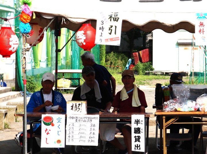 今回は事前準備の日が大雨の為出来ず、当日「やぐら」作りテント張り等全会場作りとなりましたが予定どうり開催されました、町会の総合力・チームワークの凄さを感じました。それに加え多くの方が会場に足を運んで頂いて祭りを盛り上げて頂き大イベントにふさわしい夏祭りと成りました。